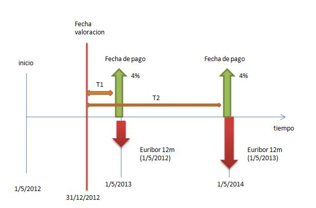 this cashflow we must discount with EUR discount curve caclulated on 31/12/2012